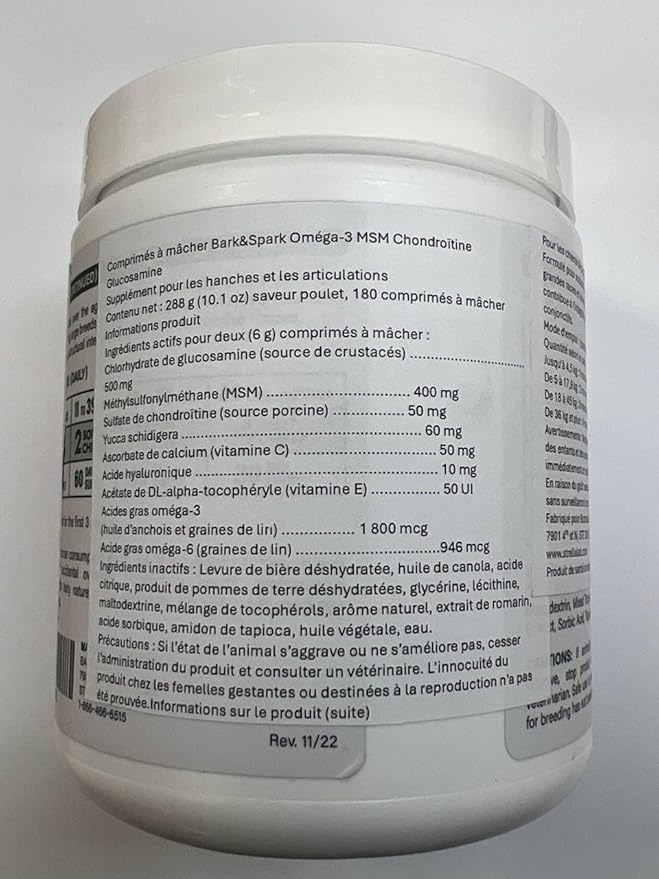 - More Chews, More Value: Now comes in a 180-treat jar, ideal for maintaining your large dog's joint health and agility. Glucosamine-rich, this joint supplement for dogs enhances mobility & bone health to keep your canine companion active & happy.