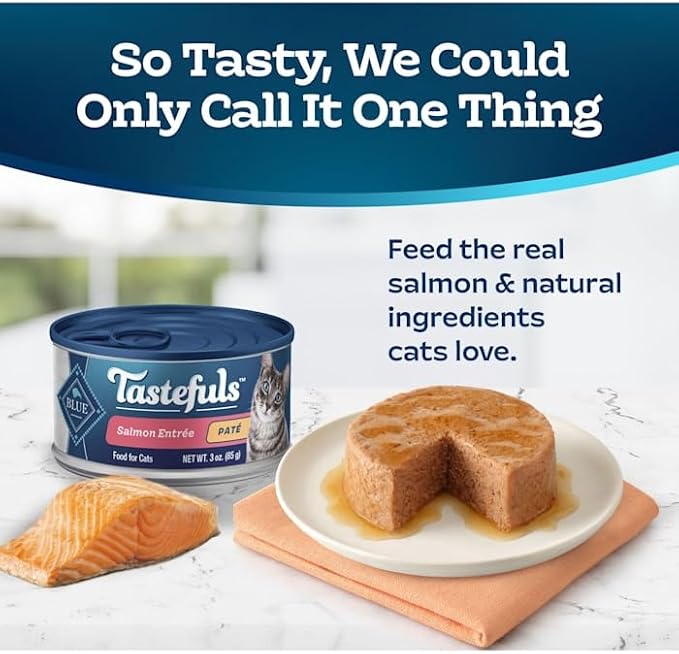 - Blue Buffalo Blue Tastefuls Salmon Entree Pate Wet Cat Food, 3 Ounce (Pack of 1)