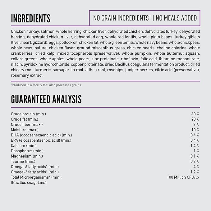 - First five ingredients of this ORIJEN cat food are fresh or raw** free-run*** chicken and turkey, wild-caught salmon, whole herring and chicken liver, providing a strong source of essential protein, vitamins, and minerals