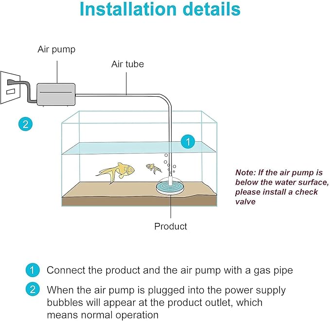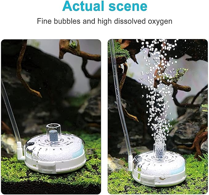 - Perfect Design: Round and ultra-thin design, small size, saving space in the fish tank, compatible with air pump wattage >1W. (Air pump and air tube are not included in the package). Please prepare an air pump suitable for this filter according to your fish tank size