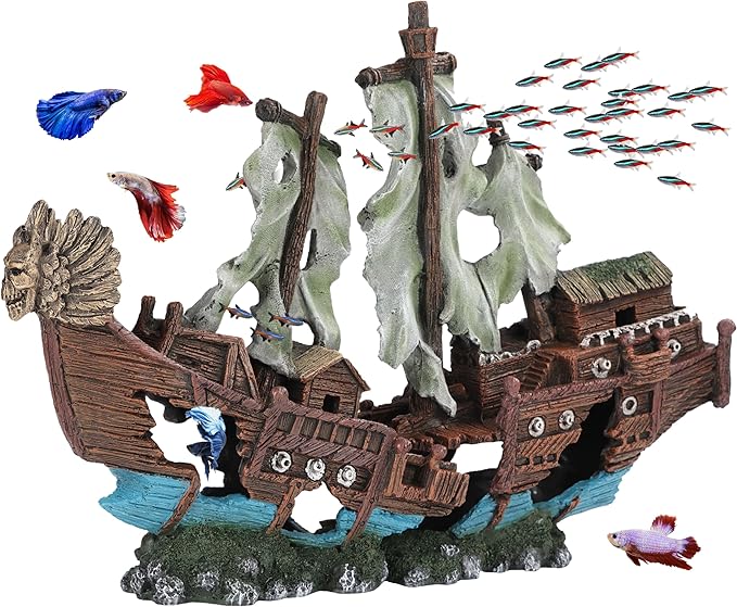 - This freestanding tattern sails sunken fish tank boat is a perfect statement piece / centerpiece & accessory. Great for beta or glow fish house or a pirate ship aquarium decoration