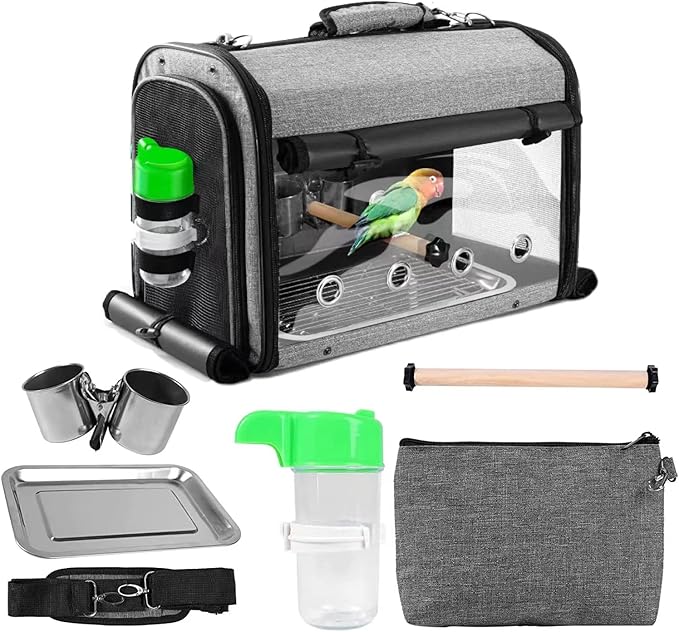- 【FEEDING & PERCHING】There are removable bowls, a water bottle and two perches come with the bird carrier. It provides a comprehensive care and comfortable environment for birds.