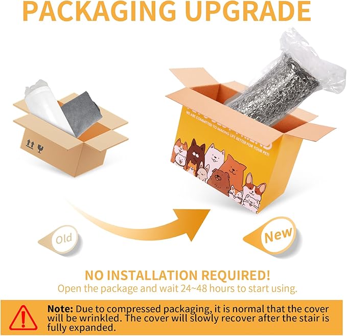 - Special Notice: Our pet ramp is packed in a vacuum compression package,please make sure to open all packages before use, let the sponge come in contact with the air, and it takes time to rebound after opening. Generally, it can fully rebound after 24-48 hours, depending on the temperature, the higher the temperature, the faster the rebound.