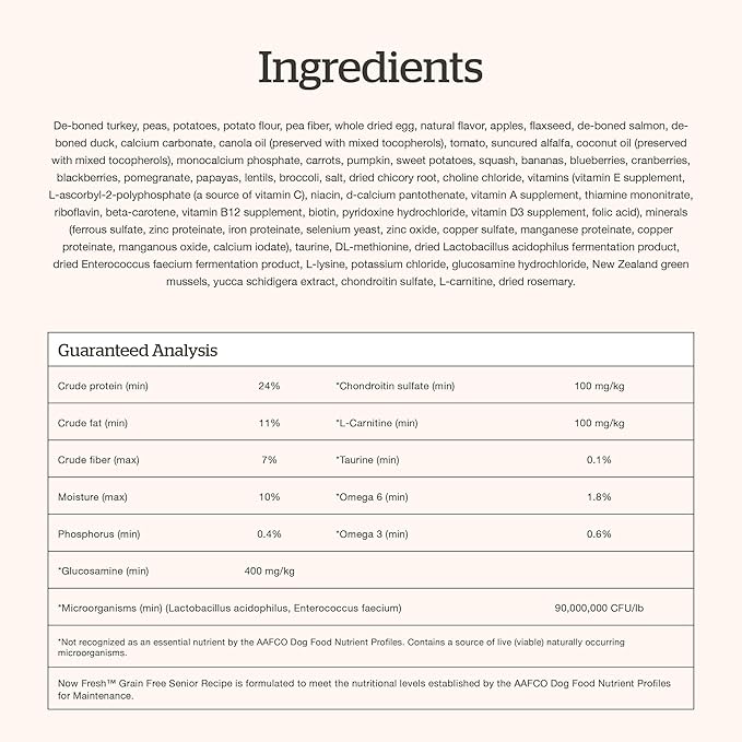 Now Fresh Grain-Free, Dry Dog Food, Real Meat and Fish, Turkey, Salmon and Duck Senior Recipe, All Breed Size, 3.5 lb Bag