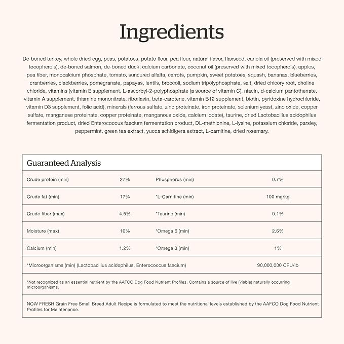 Now Fresh Grain-Free Small Breed Dry Dog Food with Turkey, Salmon & Duck, Healthy Kibble for Adults Made with Real Meat & Fish, Chicken-Free Recipe, Pumpkin & Probiotics for Good Digestion, 6 lb Bag