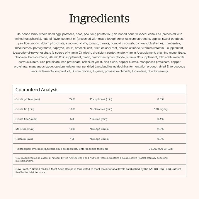 Now Fresh Grain-Free Premium Dry Dog Food with Lamb & Pork, Healthy Kibble for Adults Made with Real Red Meat, Chicken-Free Recipe, Enhanced with Pumpkin & Probiotics for Good Digestion, 3.5 lb Bag