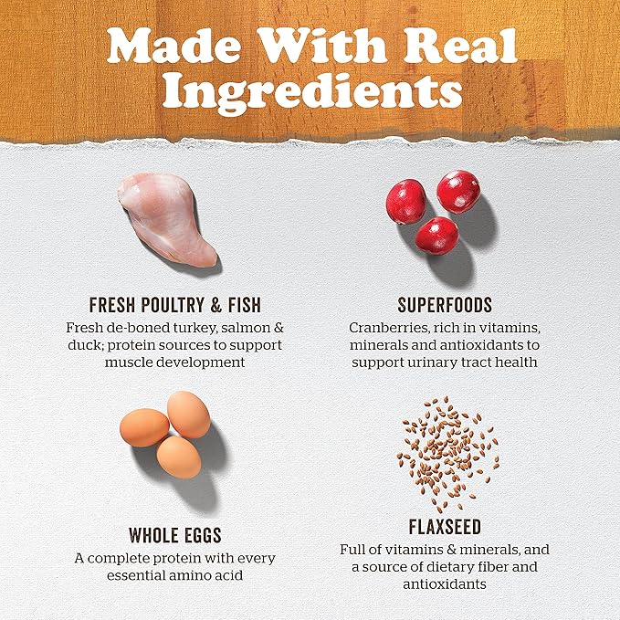 - Real Meat and Fish as the #1 Ingredient: This chicken-free recipe features premium-quality fresh de-boned turkey, salmon, and duck, providing a tasty, highly digestible multi-protein blend to support healthy muscle development