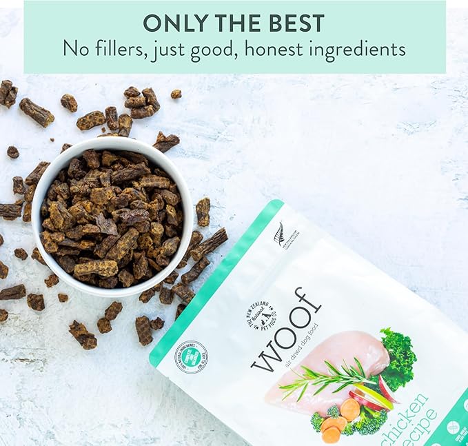 WOOF Air Dried Dog Bites - Chicken Recipe Dog Food High Protein Toppers for Dry Dog Food, Healthy Dog Food,26.5oz