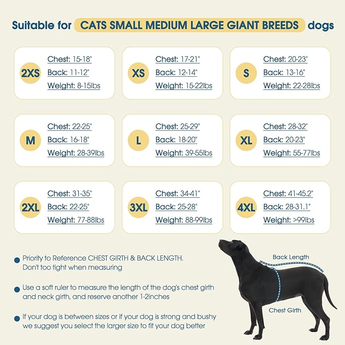 - Eight Sizes for All Dogs: eight sizes (2XS-3XL) for small medium large dogs; such as Teddy, Chihuahua, Beagle, Poodle, Bulldog, Schnauzer, Labrador, Golden Retriever, Pitbull, Boxer, Lab mix, Doberman, German Shorthaired Pointer, Terrier, and more