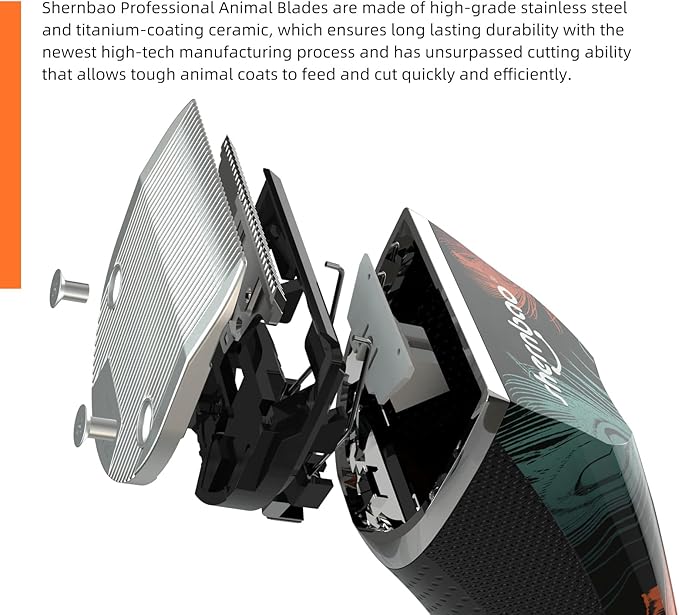 shernbao Professional Animal Grooming Clipper for Thick Heavy Coats, 5-Speed Low Noise Powerful Corded/Cordless 5-in-1 Blade for Small & Large Pet, Dog, Cat, Horse