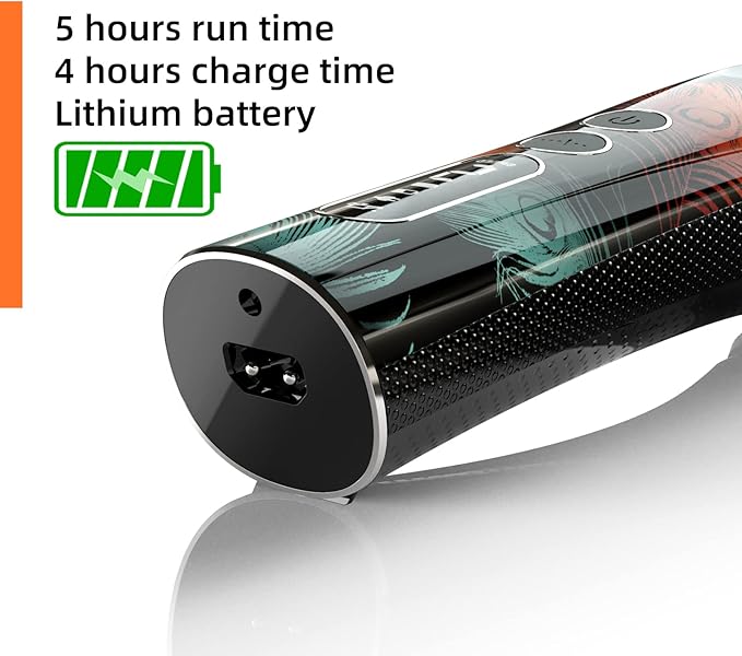 - With 5 different speeds, 5000/5500/60000/6500/7000RPM and low noise, lower than 60dB. 5 hours run time and requires 4 hours to charge.
