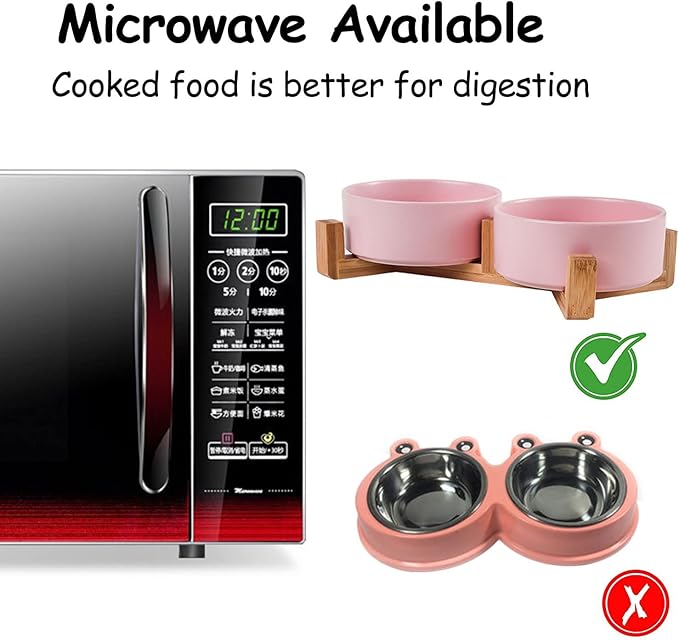 - Scientific Modern Designed - Cute dogs cats ceramic bowl with WOOD STAND design matches the home decorations. These look like decor pieces on the floor. Non-Slip bowl base, making it easy to pick up and put down.Suitable height makes your pet easier to ingest food and water, to develop a healthy eating posture, and protect your pet's cervical spine.