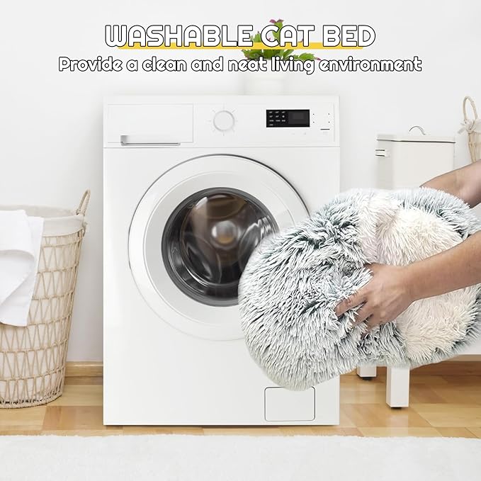 - 【New upgrade】 The fluffy cat cave bed adds a plush ceiling, which is very suitable for pets who like to dig holes and nest in corners, increasing their sense of security. You can also lay down the quilt to create a donut pet bed, with the donut design providing head and neck support while your dog cat sleeps.