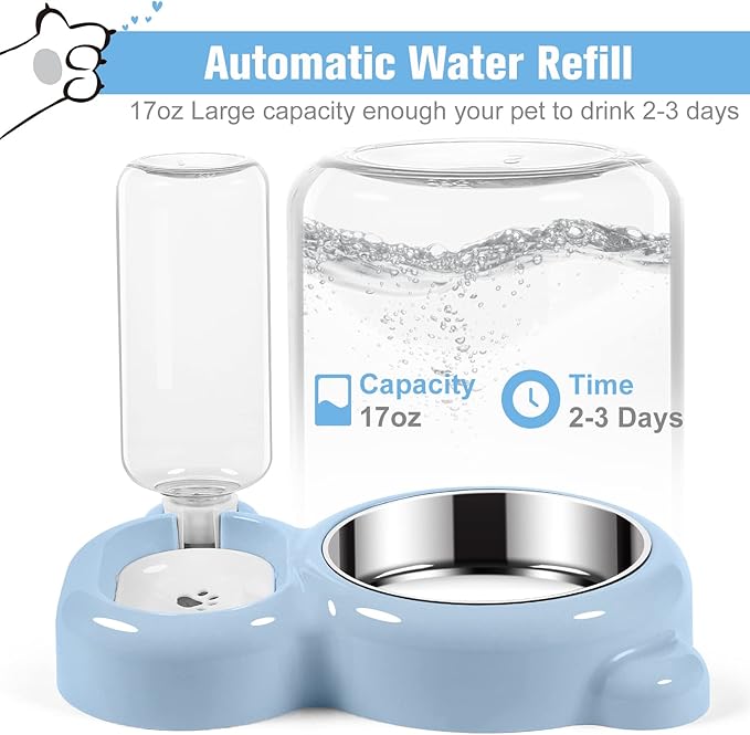 - AUTOMATIC WATER SUPPLY: The cute cat bowl adopts the siphon principle, automatic water supply and can control the water level stably, 17 oz large capacity water bottle. Whether you are at home or not, your pet can drink fresh water every day (A daily water change can help your pet drink healthier)