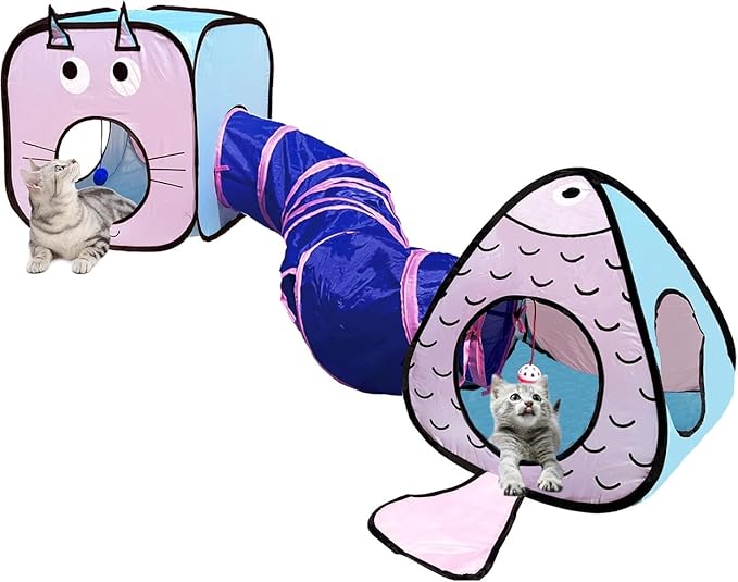 - 【Keep Pet Active】Cat tube with 2 peep holes and a number of exit design, provide quick cover or escape. Combine the hanging ball and bell in the tent and cube to attract and challenge your pets to swoop, chase and jump. Provides interactive fun that helps encourage daily exercise and keeps your pet active.
