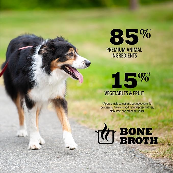 - Protein-rich grain free* dog food carefully crafted with a high moisture content, 85 percent** animal ingredients and 15 percent*** visible fruit and vegetables to provide a balanced, nourishing meal that is easy to chew and digest