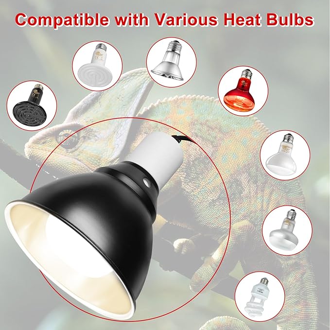 Reptile Lamp Bulb Fixture 5.5 Inch Deep Dome with Switch - Ideal for 60W/75W/100W/150W Heat Lamp Bulbs, Compatible with All E26 UVA/UVB/Basking Heat Bulbs, Supports Up to 150 Watts