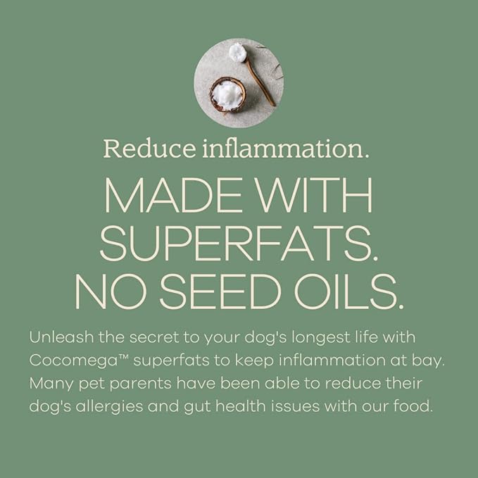 - SUPERFATS, NO SEED OILS: Unleash your dog's longest life with Cocomega superfats backed by research to keep inflammation at bay.