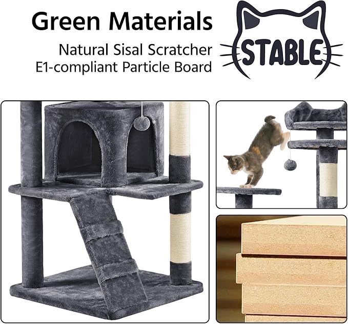 - PET-FRIENDLY MATERIALS: Constructed of solid particleboard and plush and sisal ropes, this free-standing cat tree is pet-friendly and durable for a long time, with no hazardous substances to your cats and families