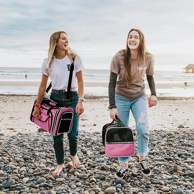 - ๐พCOLLAPSIBLE & AIRLINE APPROVED: Soft sides of the travel pet carrier can be slightly collapsed to comply with the under-seat compartment requirements of most airlines, great for traveling by air with pets. Designed with a wider rear strap to attach to your luggage for convenience.