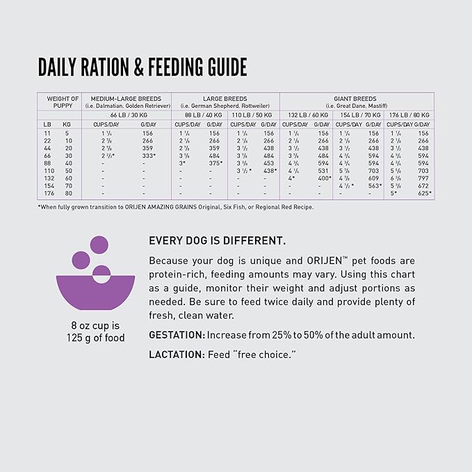 - One (1) 22.5 lb bag of ORIJEN AMAZING GRAINS Puppy Large Dry Dog Food