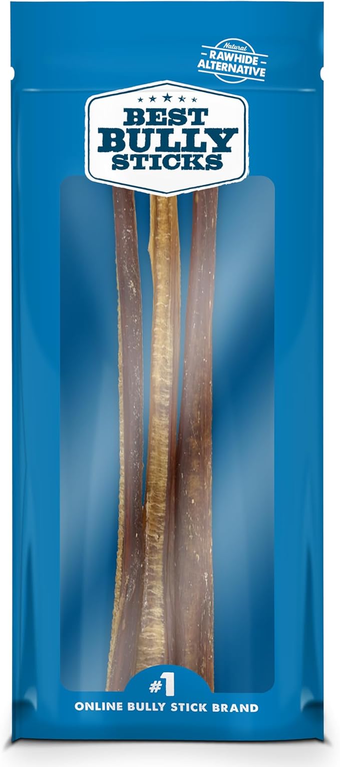 Best Bully Sticks 12 Inch Bully Sticks for Dogs - 3 Count (Pack of 1) - Natural, Easily Digestible, 100% Grass-Fed Beef, Grain and Rawhide Free - Trial Size
