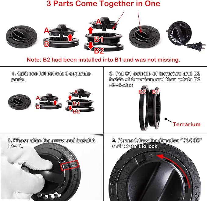 - Removable top mesh screen provide plenty of proper air-flow and allows full spectrum, UVB and IR light penetration. There is a cable pass on the right side, the rotating fixed structure can hold max 4 lines.