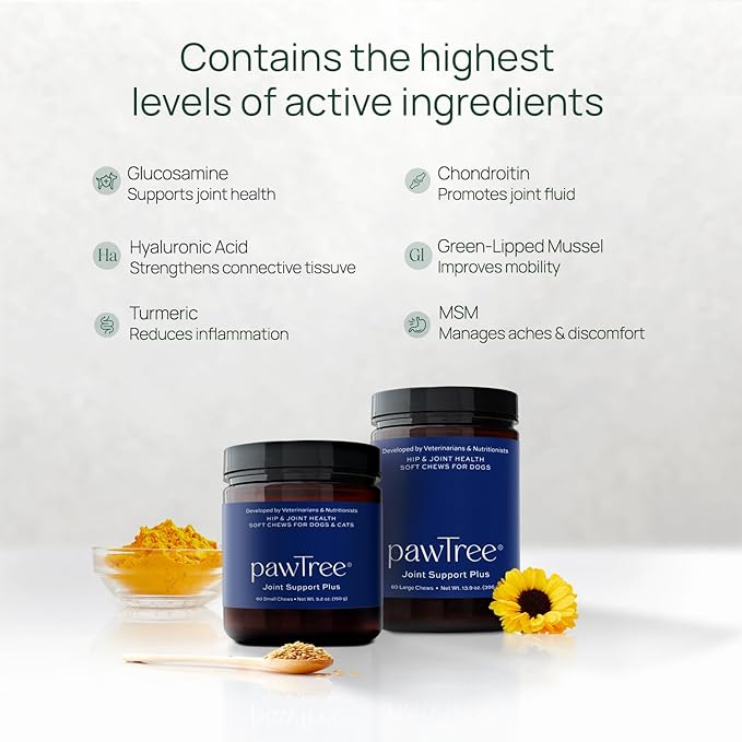 pawTree Joint & Hip Support Supplement for Dogs with Glucosamine, Chondroitin, MSM, Tumeric & Green Lipped Mussels - Vitamins, Supplements & Health Essentials - All-Natural Mobility Soft Chews