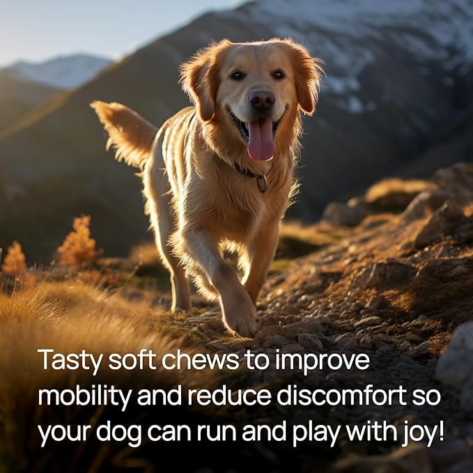 - IMPROVED MOBILITY & REDUCED DISCOMFORT - Our all-natural supplement improves mobility and reduces discomfort so your pup can run and play with joy.