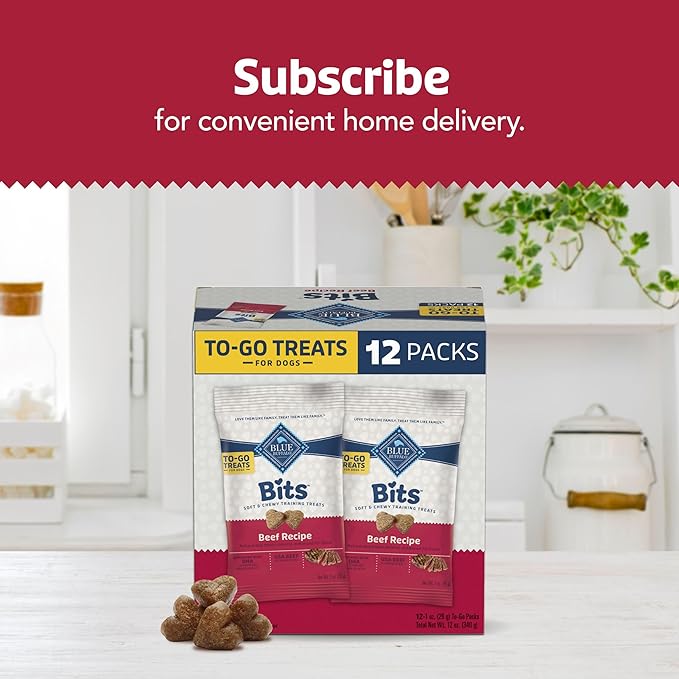 Blue Buffalo Bits Natural Soft Moist To Go Dog Training Treats Beef Recipe 1-oz Bags (Pack of 12)