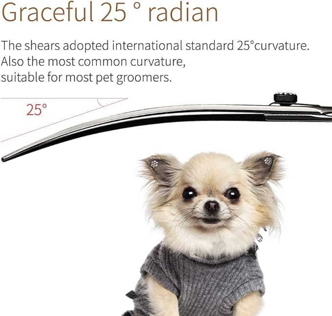 Fenice 8.0 inch Dog Grooming Curved Scissors with Jeweled Screw for Pets Japan 440C Stainless Steel Sharp Blade Light Weight Comfortable for Right Handed Groomers