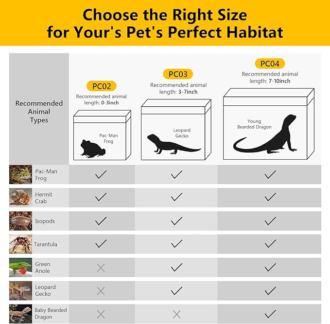 - Wide Application: Suitable for ecological rainforest terrariums, amphibious animal terrariums, breeding lizards, tortoise, chameleon, snake, milk frog, clown frog, jumping spider, turtle, grandis, morelia viridis, snake, gecko, bearded dragon, ball python, leopard, king snake, anole, hermit crabs