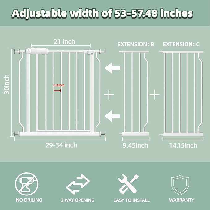 - 【GREAT FOR MOST OPENINGS】Our white gate is suitable for different doors! Choose for openings between 25"-76.37".We have different baby gates sizes,it doesn't include all extensions,the extension which you received denpends on your door opening.Whether your dooway is wide or narrow ,you can find the suitable baby gate or pet gate.And our large walk thru gate makes it easier to walk when holding the baby.