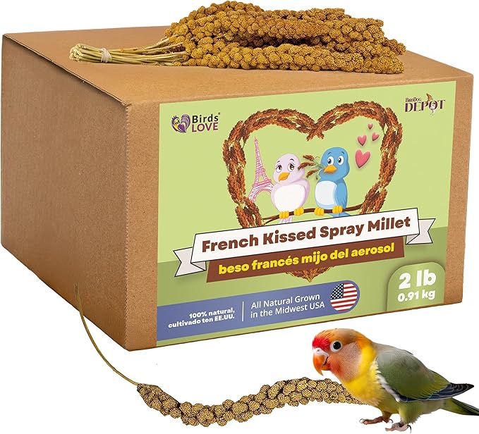 - French Kissed Bird Millet Spray: Harvested in France and packed in the USA, this pure and natural millet spray for birds is a healthy treat for all your pet birds. It provides essential energy without harmful excess oils found in other seeds.