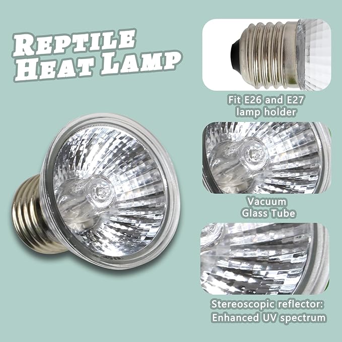 - 🦎Suitable for Many Animals - Our heat light bulbs are perfect for small geckos, hatchling reptiles, amphibians or invertebrates. Such as turtle, tortoise, spiders, tarantulas, snake, ball python, lizard, gecko, bearded dragon, iguanas, frogs, hedgehog, etc.