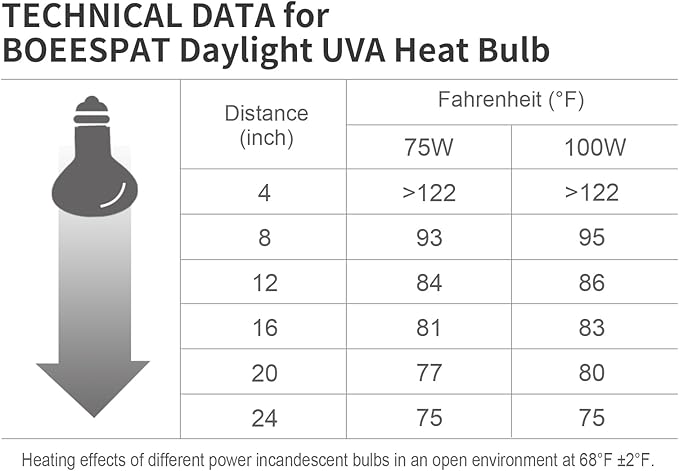 - 【Optimal Heating for Reptile Wellness】: The BOEESPAT reptile basking light bulb ensures your reptile enjoys consistent, optimal warmth, crucial for their comfort and health. By creating a basking area and raising the enclosure temperature, these bulbs help reptiles efficiently regulate their body heat. Additionally, the emitted UVA rays support physical and mental well-being, promoting natural behaviors such as increased appetite and mating.