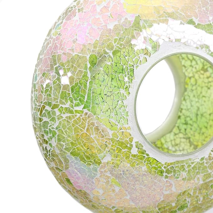 DUSVALLY 9" H Round Fly Through Bird Feeder for Wild Bird Seeds, Crackled Glass Mosaic Outdoor Hanging Feeder for Decorative in Outdoor Garden & Yard, Attracting Wild Birds, Green