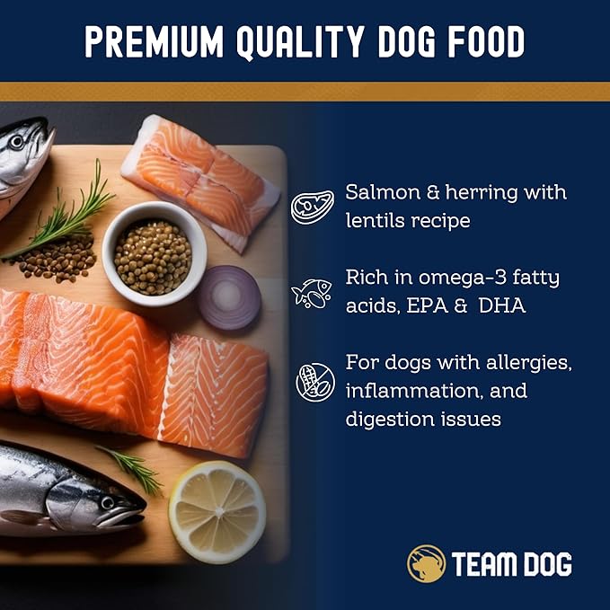 Team Dog Essential Blend Premium Herring & Salmon Dog Food | Sensitive Stomach Dog Food | Gluten & GMO Free, No Corn, Wheat, No Soy Chicken Free | All Life Stage Formula (33 lb)