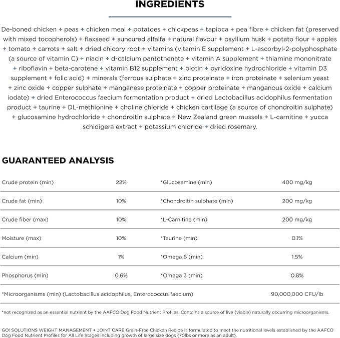 Go! Solutions Weight Management + Joint Care, Grain-Free Dry Dog Food, Chicken Adult and Senior Recipe, 22 lb Bag