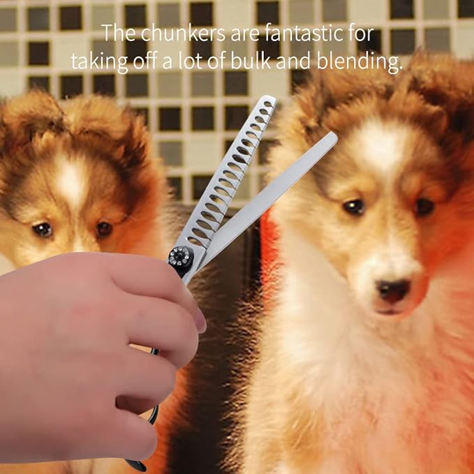 Fenice Peak 7.0'' Dog Chunker Scissors For Grooming 440C Stainless Steel Black Non-Slip Handle Sharp Blades Professional Pet Trimming Scissors for Cats Thinning Rate 75%