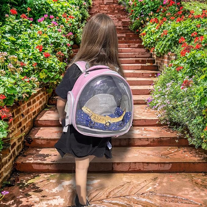 Hamster Backpack Carrier, Bearded Dragon Carrier Backpack with Clear Bubble Window,Small Animal Travel Backpack for Hedgehog Rat,Chameleon,Rabbit,Sugar Glider,Airline Approved (Pink, Backpack)