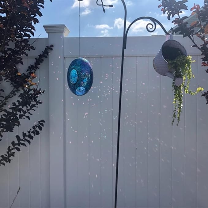 - Glass mosaic cemented on plastic circle which can reflect beautiful lights in the sun.Attractive design: Includes one round mosaic bird feeder with a hanging wire so you can easily hang the feeder outside to brighten up your backyard, patio, lawn, deck, or balcony