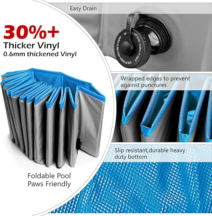 - Portable and Foldable Pool: easy to store and bring with you and your dog everywhere. It can be used as dog pool kiddie pool kids pool wading pool pet dog bath tub etc.