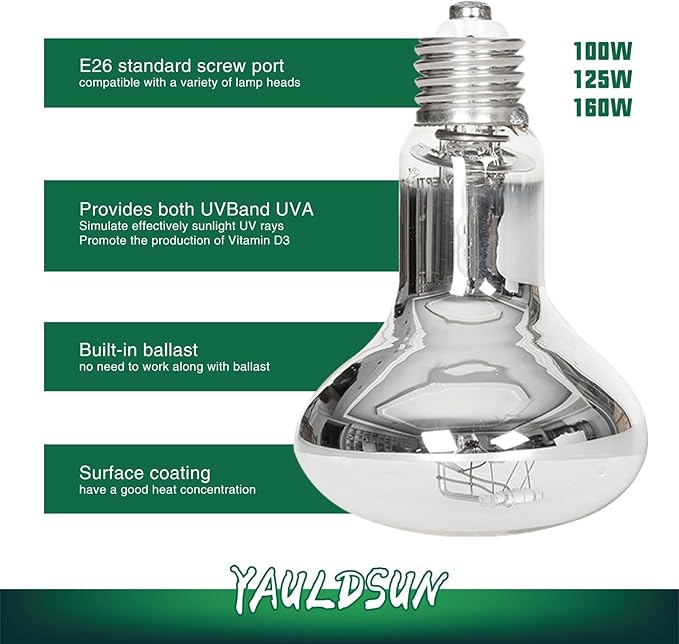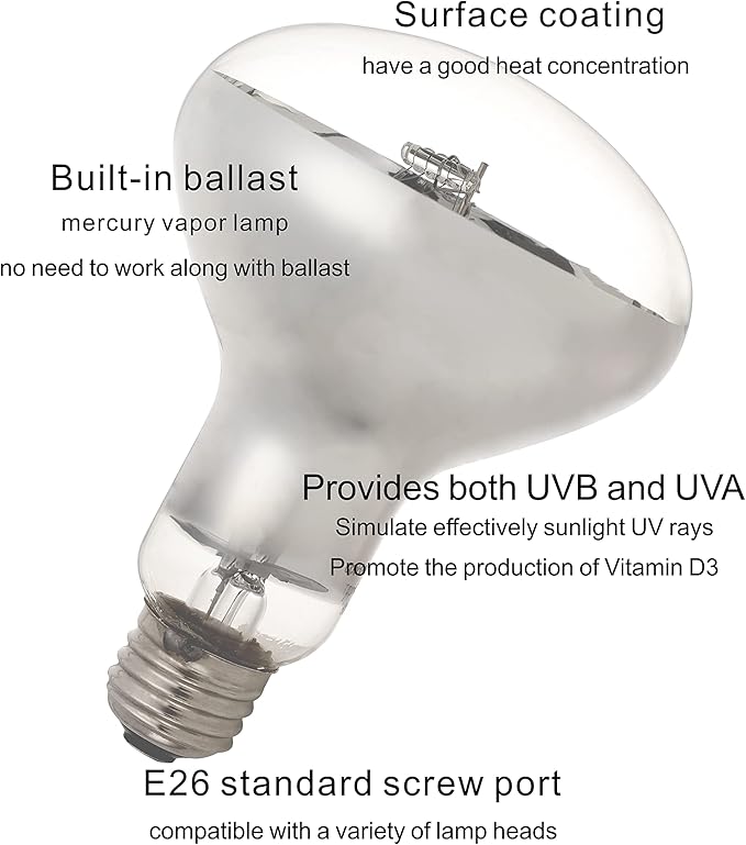 - EASY TO INSTALL:The heat lamp bulb for Reptiles is simple and easy to install, just screw it into a standard E26 screw socket.