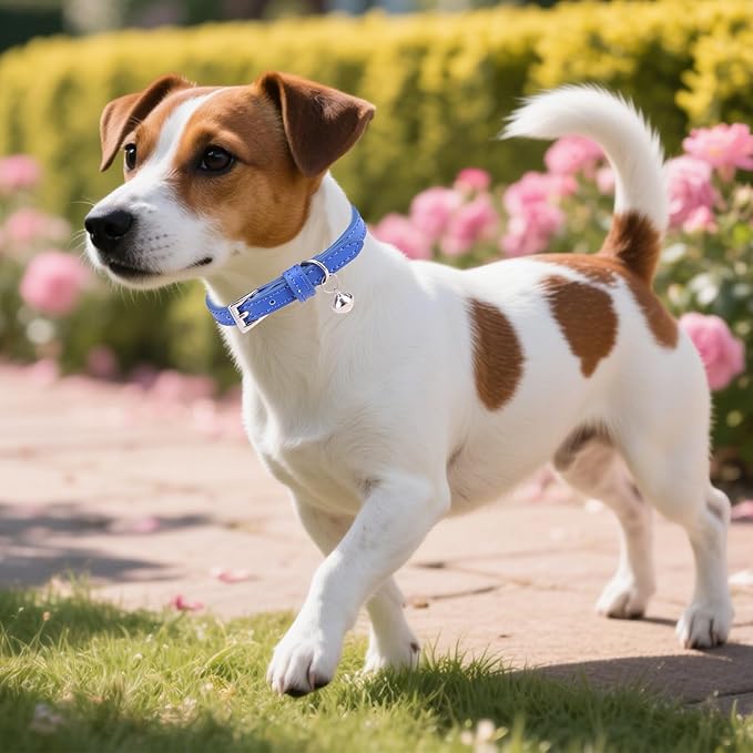 PUPTECK 2 PCS Soft Genuine Leather Cat Kitten Collar with Bells Adjustable for Girl Boy Cats Puppy - Pale Turquoise, Navy Blue