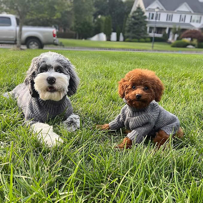 Fitwarm Dog Turtleneck Sweater, Thermal Knitted Pet Coat, Dog Winter Clothes for Small Dogs, Cat Apparel, Heather Grey, Small