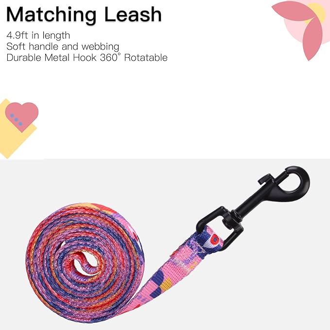 PUPTECK Adjustable Cat Harness and Leash Set Escape Proof Kitten Strap Collar for Walking Travel, Printed Pink