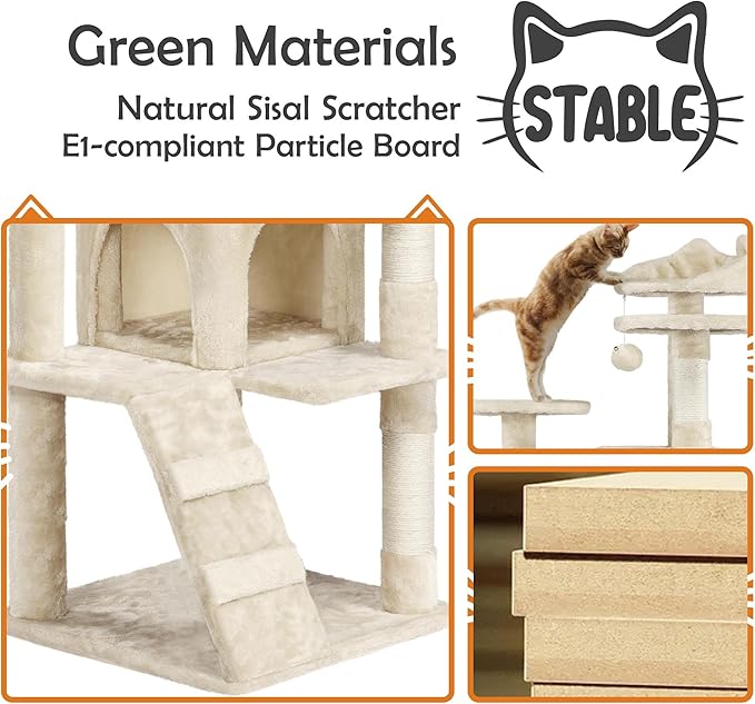 - PET-FRIENDLY MATERIALS: Made of CARB P2-compliant manufactured wood, covered by skin-friendly plush, and connected by metal accessories, our cat tower is designed to bring a safe and stable entertaining center for your little angels