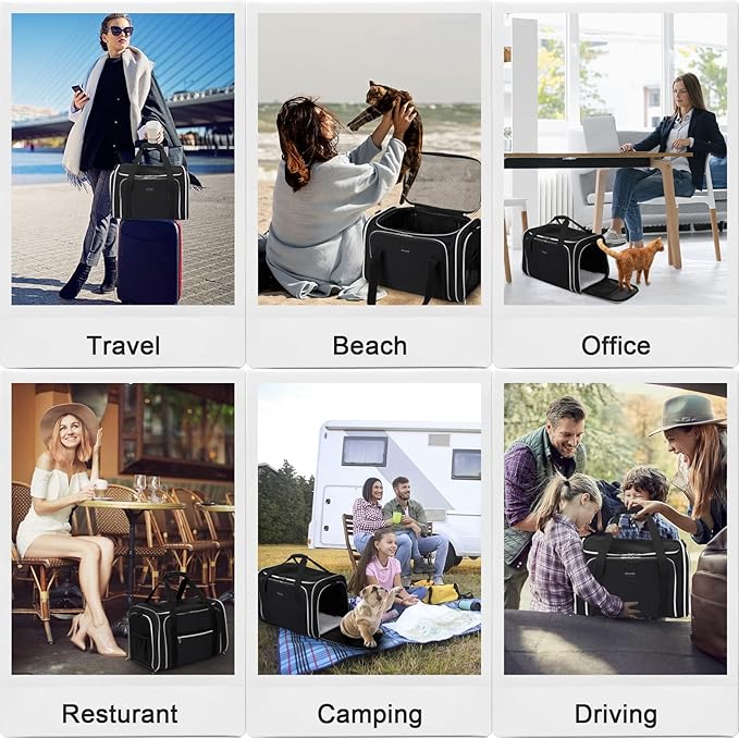 - Widely Use and Easy to Carry:Handheld; Carried on an adjustable shoulder strap; Dog/Cat carrier; Car seat; Luggage top; Under an airline seat, ideal for long trips, car rides, plane rides, vet visits, holidays, possible airport delays, waiting stops and family use.