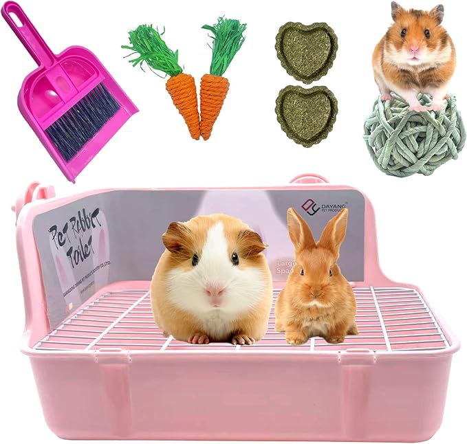 - 【QUALITY SAFETY】Guinea pig litter box is made of sturdy plastic material,tray grid is made of iron safe and durable,easy to clean.Tray grid design,Pet droppings are easy to fall.small animal litter box also helps with pet potty training.Our bunny toilet can be as ferret litter box,rat litter box,chinchilla litter box to use